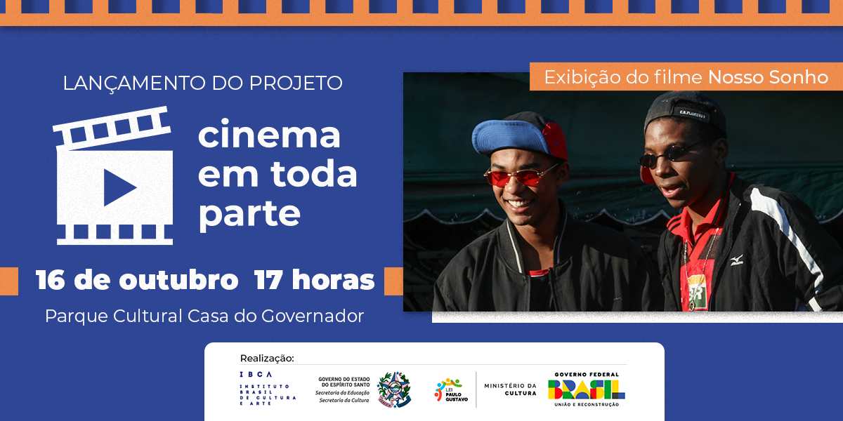Luz, câmera, ação! O Cinema em Toda Parte – Formação de Núcleos Audiovisuais no Espírito Santo vai entrar em cartaz em 10 escolas do Espírito Santo. Para marcar o lançamento do projeto, que é realizado com recursos da Lei Paulo Gustavo pela Secretaria da Cultura (Secult) e o Instituto Brasil de Cultura e Arte (IBCA), e conta com o apoio institucional da Secretaria da Educação (Sedu), acontece no próximo dia 16, a partir das 17 horas, no Parque Cultural Casa do Governador, em Vila Velha, a exibição do longa-metragem Nosso Sonho, que conta a história de Claudinho e Buchecha, desde o início da amizade dos artistas, ainda na infância, até o sucesso musical em todo o Brasil.