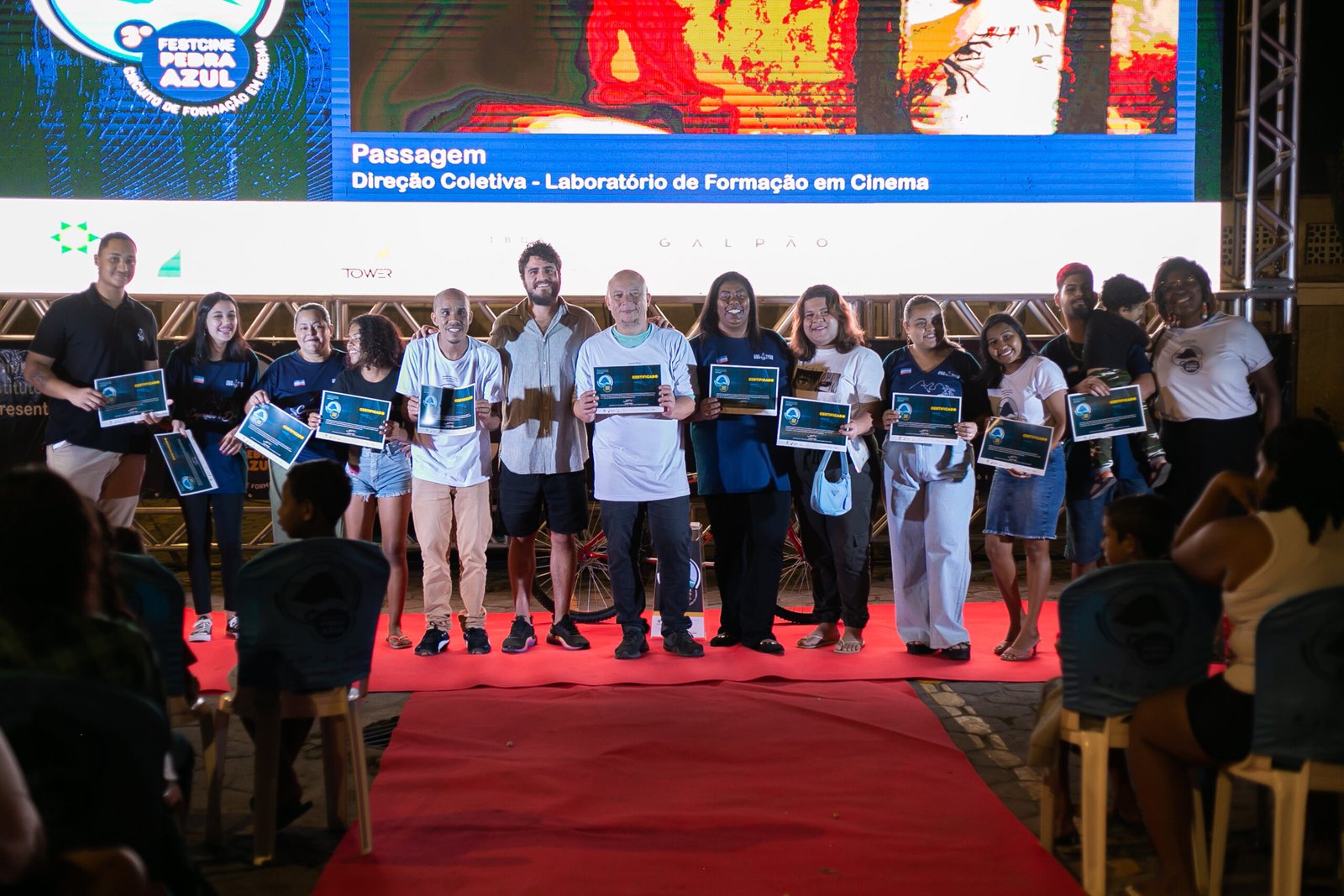 A semana de imersão na produção audiovisual foi finalizada com a exibição especial, marcada pela estreia do filme Passagem, que foi produzido durante a formação e dirigido coletivamente pelos alunos da formação. A produção percorre o passado e o presente através da história da jovem moradora Alexia, e de personagens importantes para a comunidade. A noite também contou com a exibição de três filmes que fizeram parte da programação original do FestCine Pedra Azul: Cuida de Mim, de Liziane Bortolatto; A Volta Para Casa, de Diego Freitas; e Nova Iorque, de Leo Tabosa.