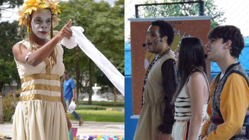 As peças A Lenda das Icamiabas e A Saga Amorosa dos Amantes Píramo e Tisbe são destaque do sábado (14). Fotos: Divulgação