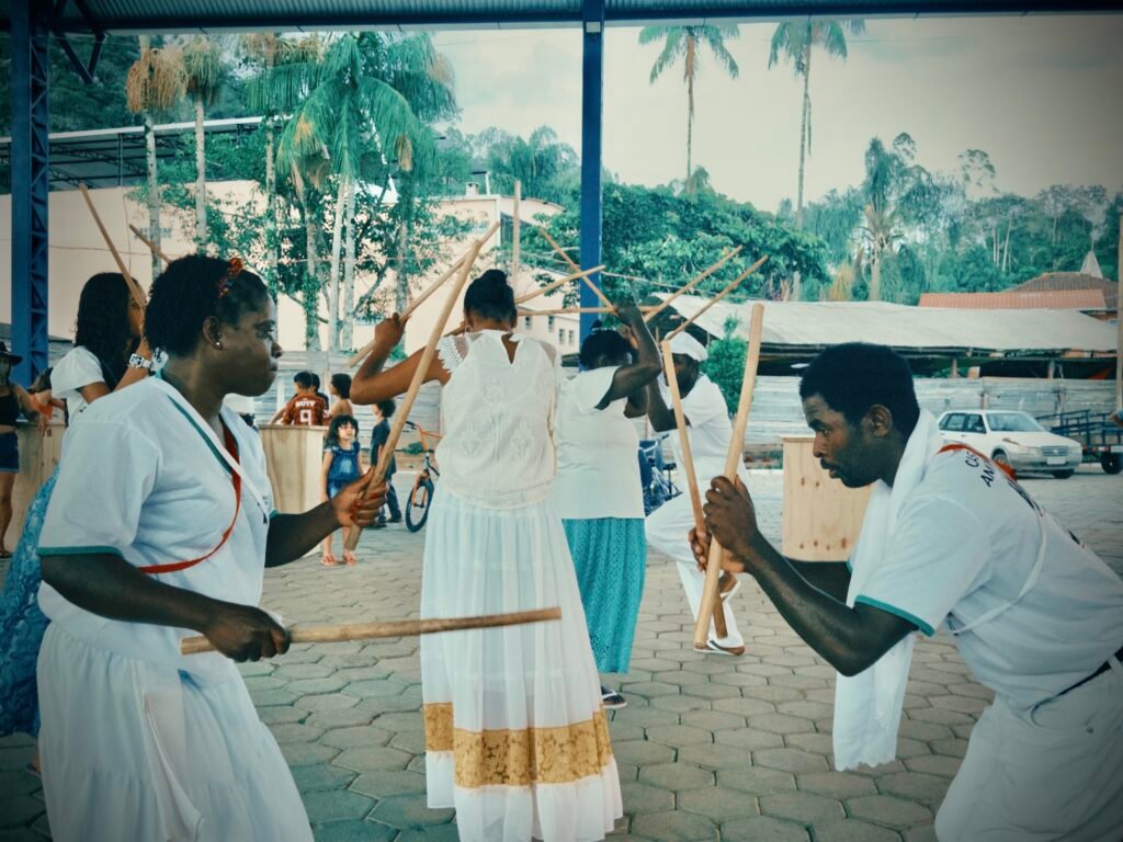 A banda, formada por crianças e adultos, fez um cortejo pelas ruas da comunidade com muita dança e música. “A gente fica muito feliz, muito agradecido de poder estar mostrando um pouquinho do nosso trabalho para as pessoas. Ficamos felizes com o interesse que as pessoas têm com a nossa cultura. Ficamos muito felizes com o acolhimento”, disse Elineia, integrante e filha de uma das fundadoras do grupo que existe desde 1999.