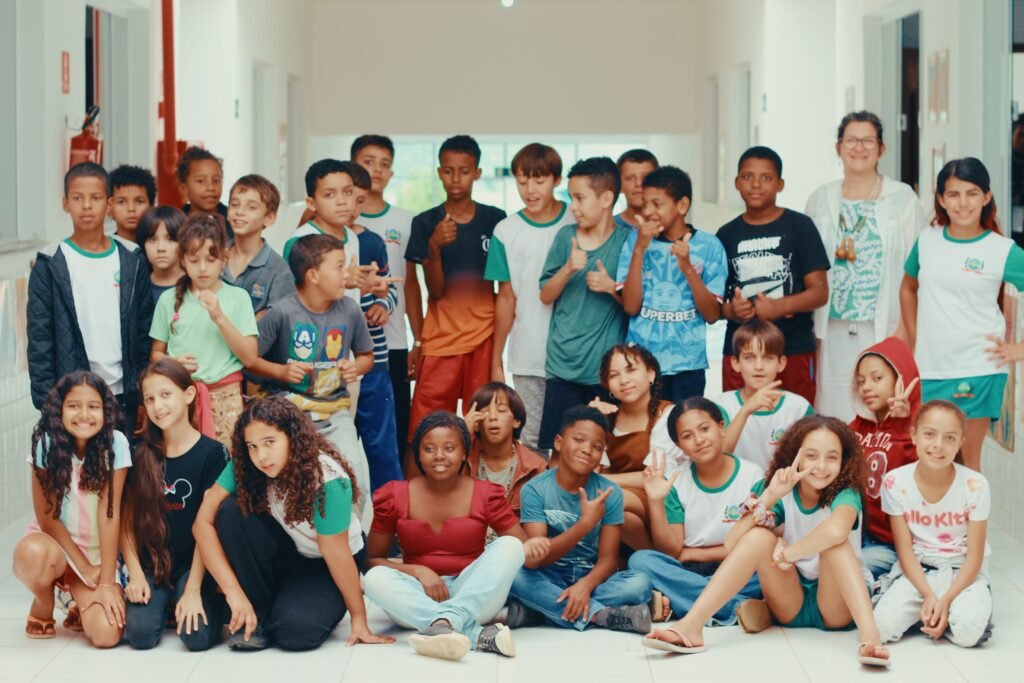 Alunos da EMEIEF Allan-Kardec Bitencourt Dias na oficina Olhar Milenar, com Lígia Sancio. Foto: Ana Pessoa (Acervo Galpão/ IBCA)