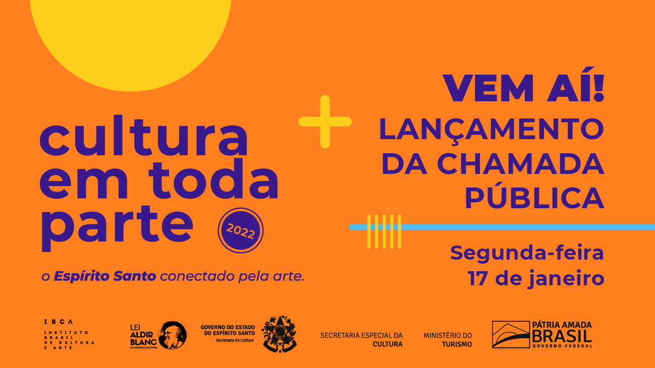 Fique ligado nas redes da Secult ES, Instituto Brasil de Cultura e Arte e Parceiros do Bem para saber tudo sobre o projeto!